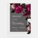 This dark romantic wedding welcome board features pink hand drawn vintage roses on a transparent background.