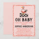 Celebrate the upcoming arrival with this charming rustic baby shower invitation featuring a hand-drawn goose illustration and playful “Oh Baby” typography. Designed with a farmhouse-inspired aesthetic, this invitation combines a classic black-and-white checkered pattern with soft coral accents and a whimsical scalloped border—perfect for a cozy, countryside-themed baby shower.