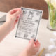 Blue and white floral garland wedding vellum overlay invitation. Announce your upcoming nuptials with this exquisitely quirky and whimsical wedding invitation. The design presents a delightful juxtaposition of a hand-drawn, black and white scribble style illustration set against a translucent vellum overlay, creating a vintage French aesthetic. The illustration is filled with playful details, featuring charming and loosely rendered doodles of hearts, a wedding ring, and a tied bow. A handwritten font adds an elegant yet informal touch, perfectly complementing the art. Further enhancing the design is a decorative frame, punctuated at each corner by small, lovingly crafted hearts, collectively creating a truly unique and memorable invitation.