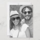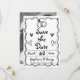 Hand drawn scribble squiggle whimsical retro French style wedding Save the Date photo card in black and white. It showcases whimsical hand-drawn doodles in retro French style. It includes charming doodles of hearts and wedding rings, complemented by a font with handwritten look and a waved border that enhances its quirky appeal. The design presents a playful and fresh aesthetic and is customizable to reflect your personal style. The back features a photo of the couple.