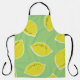 Hand drawn seamless pattern with lemons in yellow,black and cream on green background.