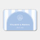 Modern coastal wedding matches design featuring a trendy arch shape against elegant blue and white stripes. All colors (stripes, background arch, icons, and of course font colors) can be edited by you from inside the design tool).