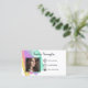 Charming social media business card with room for two photos of you or for your logo inside hand-drawn simple frames atop messy watercolor stripes in bright colors: yellow, pink, purple, and mint green. The social media icons are doodled for a personal impression. Add your name in a brush script, and your social media handles in a charming hand-written font.