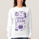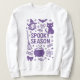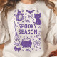 This whimsical sweatshirt is perfect for celebrating the spooky season. The doodle-style design features hand-drawn illustrations of coquette bows, candy, a witch, cat, bat, cauldron and more, all surrounding the festive phrase "Spooky Season." It's a great way to celebrate Halloween this season.