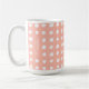 Features hand-drawn white spots on a coral background. Personalize with a name.