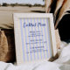 Whimsical mediterranean themed bridal shower cocktail menu sign featuring a soft and inviting color palette of buttercream and soft blue stripes. This tranquil backdrop is perfectly complemented by the fun dark blue handwritten font, creating a harmonious blend of colors.