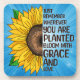 Pretty yellow hand drawn sunflower with a colorful retro background. Inspirational quote. Just remember wherever you are planted to bloom with love and grace.
