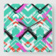 Hand Drawn Teal Zig Zag Pattern Square Wall Clock