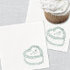 Personalized Vintage Cake Wedding Monogram Napkins. These custom wedding cocktail napkins feature a simple vintage-style cake illustration in emerald green, topped with the couple’s monogram initials and wedding date for a timeless and elegant touch.