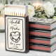 Personalized Minimalist Wedding Matchbox Favors. These charming matchboxes feature a clean off-white background with a simple, elegant layout. At the top sits a hand-drawn vintage heart-shaped cake with the couple’s initials placed on the top tier for a sweet, personalized detail. A thin double-line border frames the design, adding a subtle classic touch.