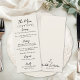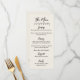 This minimalist wedding menu card features an ivory or off-white background with crisp black fonts and artwork, giving it a timeless, vintage-inspired look. A simple squiggle line at the top adds a subtle accent, while the front showcases your menu details in an elegant mix of script and serif fonts for a refined and classic feel.