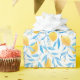 Watercolor lemons and blue leaves create a charming seamless pattern.