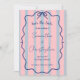 Whimsical and colorful wedding save the date featuring a sweet harmony of pastel pink, dusty blue stripes, a wavy doodle frame, and a blue bow. This simple yet romantic combination of its retro backdrop and elegant script calligraphy makes this invitation truly unique and fun.