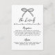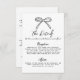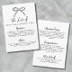This wedding details enclosure card features a simple, minimalist design with a delicate hand-drawn bow at the top. The front includes a clean layout with a mix of handwritten script and a simple handwritten font, offering a sophisticated yet approachable feel.