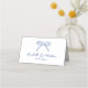 European Inspired Blue and White Whimsical Wedding Place Setting Table Card. These playful and elegant place setting cards, inspired by Italian, French, and European styles, are perfect for wedding receptions, rehearsal dinners, bridal showers, and more. The front showcases "Table ___" in a cheerful font, with lines below for filling in the table number and guest names, making seating arrangements both effortless and stylish.