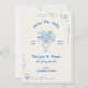 Hand Drawn Whimsical Flower Vase Blue Wedding Save The Date