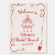 Set the tone for a whimsical and elegant celebration with a hand-drawn red bridal brunch shower sign. This charming design combines delicate illustrations and bold red accents, creating an inviting centerpiece for your event. Personalized with the bride’s name and event details, it’s perfect for welcoming guests and enhancing your décor. Whether displayed on an easel or as part of a photo backdrop, this sign adds a vibrant and artistic touch to your bridal brunch, making it truly unforgettable.