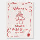 Welcome guests to a delightful celebration with this hand-drawn whimsical bridal shower sign. Featuring charming illustrations and playful typography, it sets a joyful tone for your event. Customize the design with the bride-to-be's name and date for a personal touch. Perfect for displaying at the entrance or on a welcome table, this sign adds a fun, artistic flair to your décor while guiding guests to the festivities. Crafted with love, it’s an unforgettable detail for a special day.