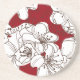 Hand Drawn White Wild Flowers on Red Coaster