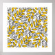 Hand Drawn Yellow Gray Leaves Pattern Poster