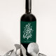 Elegant, modern holiday wine labels featuring the phrase "All is calm, all is bright" in a white, hand-lettered script with starburst accents against a green background. Personalize the holiday wine label by adding your name or custom text.