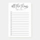 Modern personalized note pad and features "all the things" at the top in handwritten style lettered typography. Personalize with your name or leave blank if desired. 14 lines with checkboxes help you track all of the important tasks that you need to get done! Bizzy Bee Creation ©