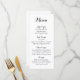This simple yet elegant wedding menu features a hand lettered style of calligraphy that will compliment a wedding or event of any theme. You can't go wrong with this elegant, understated design. Customize the background color to match any theme, or stick with classic white.