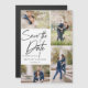Take your 5 best images from your engagement photo session with 4 for the front and one for the back. It features a hand lettering design that says Save the Date.