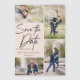 Take your 5 best images from your engagement photo session with 4 for the front and one for the back. It features a hand lettering design that says Save the Date.