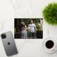 Cute Easter photo card featuring "Easter Blessings" displayed in a handwritten gold foil script overlay. Personalize the front of the gold foil Easter card with your horizontal photo, custom greeting, and family name. The simple Easter card reverses to display a solid pink background with space for additional photos and text.
