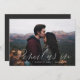 This save the date features hand lettered "pencil us in" over a horizontal photo, perfect for photos that have a lot of white space or sky at the top. This template also has a backer design for an optional additional photo and details like your wedding website. The charcoal color on the back can be changed to any color you'd like in the customization window!