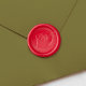 Before the wax hardens, gently and evenly press the wax seal stamp into the melted wax, ensuring it's centered.