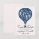 Hand Lettered Love Navy Blue Hot Air Balloon, with Love is in the air hand drawn text, cute balloon, hearts, swirls, doodles, and fun fonts. Background color can be customized to any of your choosing, just click the customize further link. Perfect for a Spring or Summer wedding - Personalized Wedding Save the Date Cards!