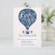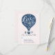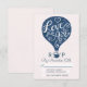 Hand Lettered Love Navy Dark Blue Hot Air Balloon, with Love is in the air hand drawn text, cute balloon, hearts, swirls, doodles, and fun fonts. Background color can be customized to any of your choosing, just click the customize further link. Perfect for a Spring or Summer wedding - Personalized Wedding RSVP Cards!