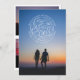 hand lettered medallion shape with text in circular shape; move to adjust over your photo. Optional additional photos on the back side. Open full editor to move, scale or delete as needed.