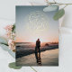 Hand lettered medallion shape with text in circular shape in real foil; open full editor and move (on the foil layer) to adjust over your photo. Optional additional photos on the back side.