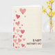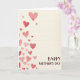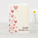 This greeting card features a cascade of watercolor hearts drifting up the left side, their soft edges and gentle washes hinting at a tender closeness, like two people quietly choosing each other again and again ❤️. The hearts vary in size and shift from pale blush and rosy pink to deeper red, creating a romantic rhythm as they climb. A warm, diffused light seems to sit over the paint, making the layered color look slightly translucent and touchable. The background is an off-white cream with faint horizontal lines that resemble fine stationery texture, keeping the scene calm and intimate. In the lower right area, a short message is placed neatly as a visual counterbalance to the hearts. The lettering is in a deep earthy brown, set in flowing cursive-style writing that feels gentle and affectionate 🌼. The hearts stay clustered along the left margin while the open space to the right leads your eye down toward the brown text near the bottom-right corner.