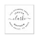 This self-inking stamp is perfect for any married couple looking for a personal touch to their post-wedding letters! This design keeps the classic round shape of the return address with your last name in the center in a rustic, hand-lettered script, and 2 rings of text around it. The first ring, on the inside, features your first names and the second ring around the outside features your return address. To customize this design, simply click the "personalize" button and add your own details into the text boxes that appear.