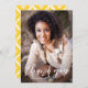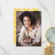 Stylish graduation thank you card featuring white hand-lettered calligraphy with yellow ikat diamonds pattern. This flat card will be perfect for wedding thank you card or graduation thank you card. You can customize the photo, texts, and back pattern. A postcard version is also available.