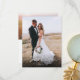 Elegant and simple wedding thank you template 2-sided card featuring a hand lettered typography script text with a heart between the words. Add your favorite photo full bleed in the front and another photo in the back with default message on the back that is editable.