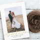 Elegant and simple wedding thank you template folded card featuring a hand lettered typography script text with a heart between the words. Add your favorite photo full bleed in the front and another photo inside with default message that is editable.