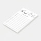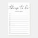 Chic personalized note pad in crisp black and white features "things to do" at the top in hand lettered script typography. Personalize with your name or choice of text beneath, or leave blank if desired. 11 lines with checkboxes help you keep track of all your important tasks!