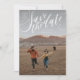 This save the date features hand lettered "save the date" over a vertical photo. This template also has a backer design for an optional additional photo and details like your wedding website. The charcoal color on the back can be changed to any color you'd like in the customization window!