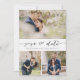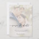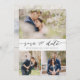 Pick the best pictures from your engagement shoot or your favorite pictures of the two of you for this perfect save the date. The words save the date are handwritten to give a personal feel to the card. The front has 3 images and the back has a large image with a white filter on top. Edit this save the date wedding card with your information and customize it for further for font and font color options.