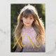 Modern Valentine's day card featuring your vertical photo with "XOXO" displayed in gold foil lettering. Personalize the front of the Valentine's day photo card with your name. The back of the gold foil Valentine's day card features a pattern of dark pink and white dots with a light pink background.