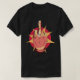 My 11 yo wore adult XL (5’7” 165#). The 8yo is small framed. She wore adult small and tied it in the back. Grandma wore adult large with long sleeve shirt underneath. Tall girl adult medium. Dark haired male adult large. Good quality dark Heather gray, Gildan brand shirt. -it was next up from basic choice and cost about $20 per shirt. Not too thick or thin. Washed and dried well, no major shrinkage. Not see-through. Can wear a bra under it fine. Screen print is just as shown and well done, front and back.