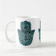 Hand of Fatima (Hand of Hamsa) turquoise pattern on white mug. Symbol of Protection. Matching items available.