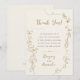 Featuring hand-painted gold leaves and flowers, this wedding thank you card has a whimsical design with customizable black and gold typography on a cream paper texture background.