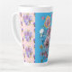 Hand Painted Pink Blue Pink Budgie floral Latte Mug. A glorious watercolor floral design. Designed from my original watercolor paintings, that I painted from my own flower garden.