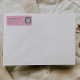 As you see the design features a unique green hand made and drawn Christmas wreath. With green hand written typography of your family . And your handwritten return address. That is easily customizable. All on pink bold background.